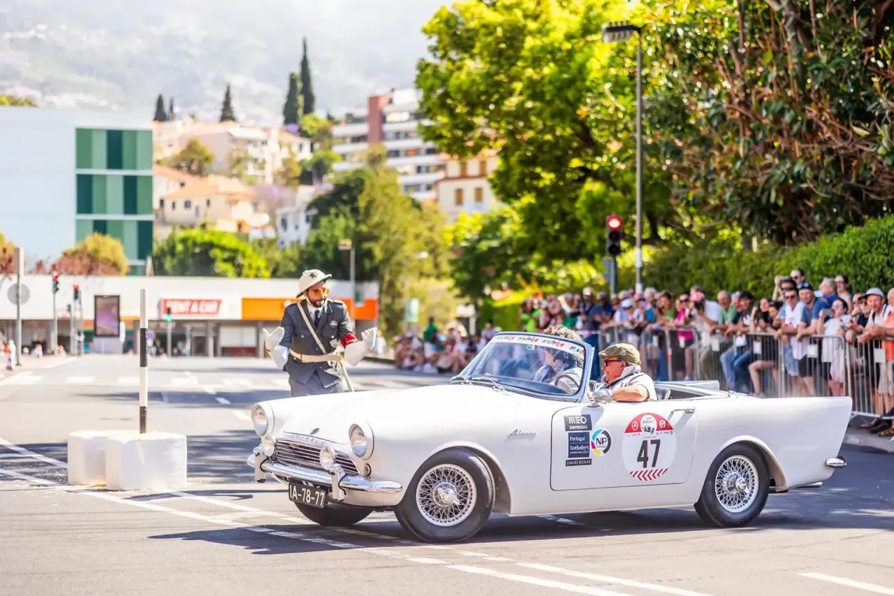 Na manhã de domingo, 57 máquinas alinharam-se para percorrer o traçado histórico desenhado nas ruas do Funchal, para alegria do imenso público que se junta nos passeios, jardins e varandas.