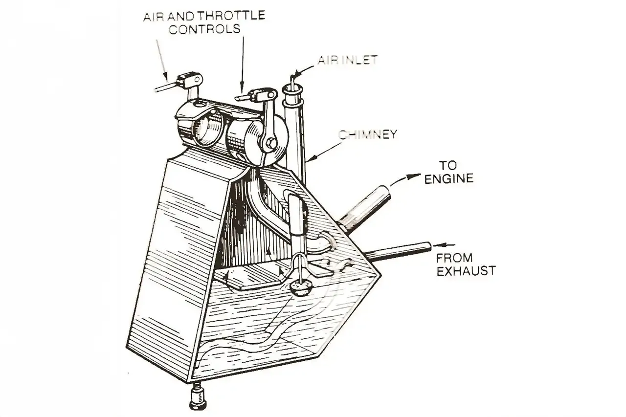 Os motores dessa época, eram alimentados por um carburador de “superfície”, em que o combustível era aquecido no reservatório até formar vapor, gerando uma mistura de ar e combustível que seria sugada para o motor.