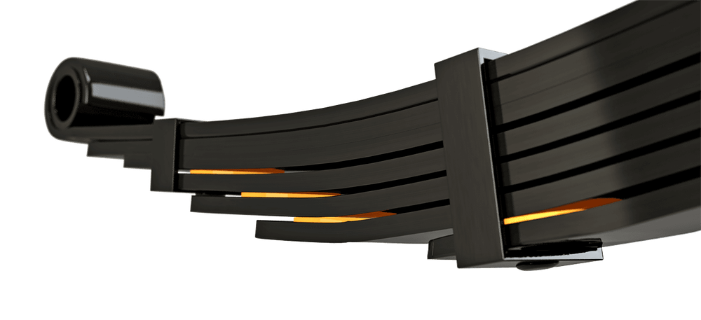 The semi-elliptical spring or conventional leaf spring is made up of several overlapping leaves.