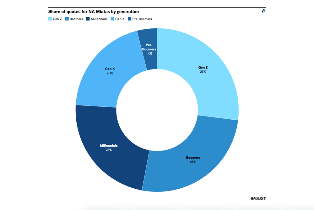 Hagerty concluded that the population of MX-5 NA owners is very evenly distributed across different age groups: