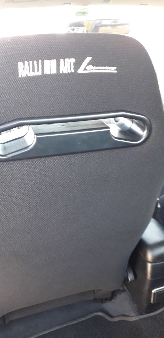 Bancos dianteiros da marca “Recaro: Ralliart – Mitsubishi Motors”.