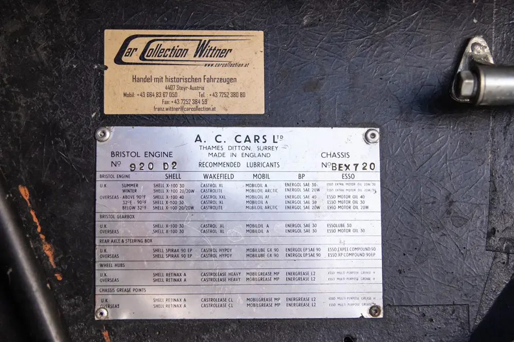 Este exemplar foi vendido pela AC Imports P. Dechert, nos Estados Unidos, em Abril de 1959. É uma unidade matching numbers, incluindo as cores da carroçaria e interior, e está em excelente estado, pronto para qualquer tipo de utilização. Foi submetido a um restauro total, bem documentado, e o motor foi preparado pelos especialistas da IN Racing em Inglaterra, com pistons forjados, cabeça e árvores de cames de competição, entre outros componentes que fazem deste Aceca um automóvel muito rápido e fiável.