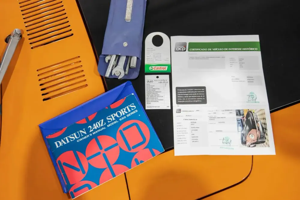 Este 240Z é uma verdadeira peça de colecção para amantes da marca japonesa, pensada, restaurada e impecavelmente mantida por entusiastas e conhecedores da história da Datsun. Incluída na venda está todo o material original, incluindo as jantes de liga leve, consola central e bancos. Acompanha ainda com o kit de ferramentas original, manual de condutor e certificado de interesse histórico do ACP.